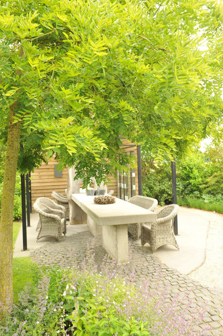 Dit split is uitstekend geschikt voor looppaden, siervlakken, borders en het opvullen van plantvakken. De hoekige vorm van de steentjes zorgt ervoor dat ze goed in elkaar grijpen, waardoor een stabiel en gelijkmatig oppervlak ontstaat dat prettig beloopbaar is. Ook voor opritten en terrassen kan Ardenner split worden toegepast, omdat het stevig ligt en weinig onderhoud vraagt. De warme gele kleur combineert prachtig met groene beplanting, houten tuinelementen en lichte bestratingsmaterialen.