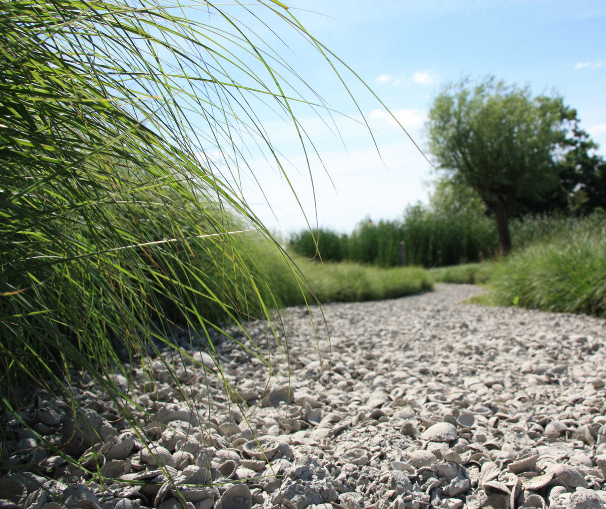 Een groot voordeel van schelpen is dat ze na verloop van tijd licht inklinken en daardoor een stevige laag vormen die onkruidgroei helpt te beperken. Daarnaast zorgen schelpen voor een uitstekende vochtregulatie in de bodem, waardoor planten profiteren van een gezonde en luchtige structuur. Door de natuurlijke kleuren passen ze perfect in zowel moderne tuinen als meer landelijke of kustgerichte stijlen.