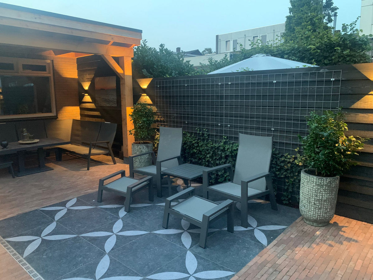 De kleur Flower Base heeft een diepe, natuurlijke steenlook met subtiele fossielachtige details en grijstinten. Deze uitstraling past perfect bij moderne, industriële en luxe buitenruimtes. De tegel combineert sterk met donkere gevels, metalen accenten, strakke borders en weelderige beplanting. Dankzij het rijke kleurbeeld krijgt je tuin een stijlvolle en uitnodigende sfeer.