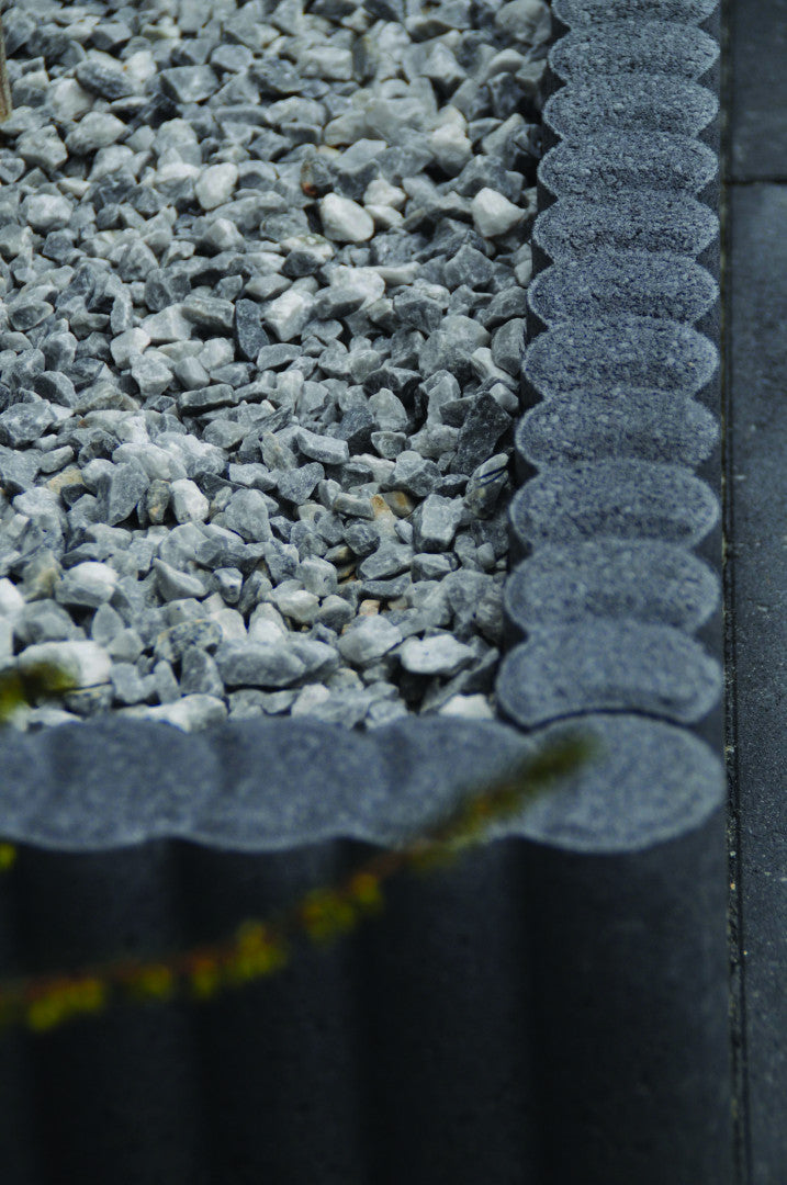 De Minirondo palissade van Excluton bestaat uit stevige, ronde betonnen elementen die met elkaar verbonden zijn. Deze constructie zorgt voor stabiliteit en maakt het eenvoudig om duidelijke contouren en hoogteverschillen in de tuin aan te brengen.