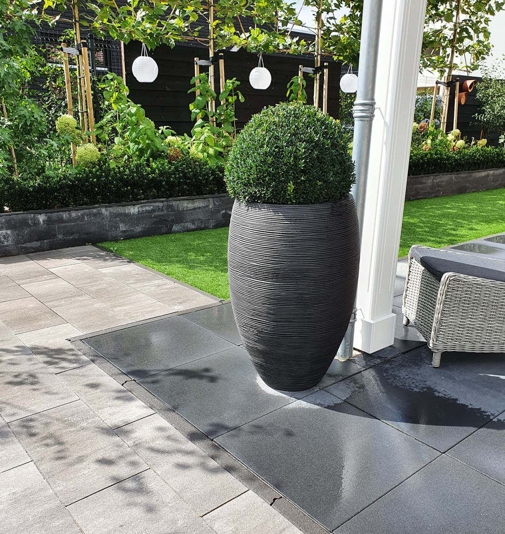 De antracietkleur geeft de opsluitband een moderne, krachtige uitstraling. Deze diepe tint combineert mooi met lichtgrijze tegels voor een stijlvol contrast, maar sluit ook goed aan op donkere sierbestrating voor een rustige, strakke eenheid. De kleur past uitstekend binnen hedendaagse tuinstijlen zoals modern, industrieel en minimalistisch. Hierdoor ontstaat een verzorgde en tijdloze sfeer rondom paden, terrassen en andere verhardingen.