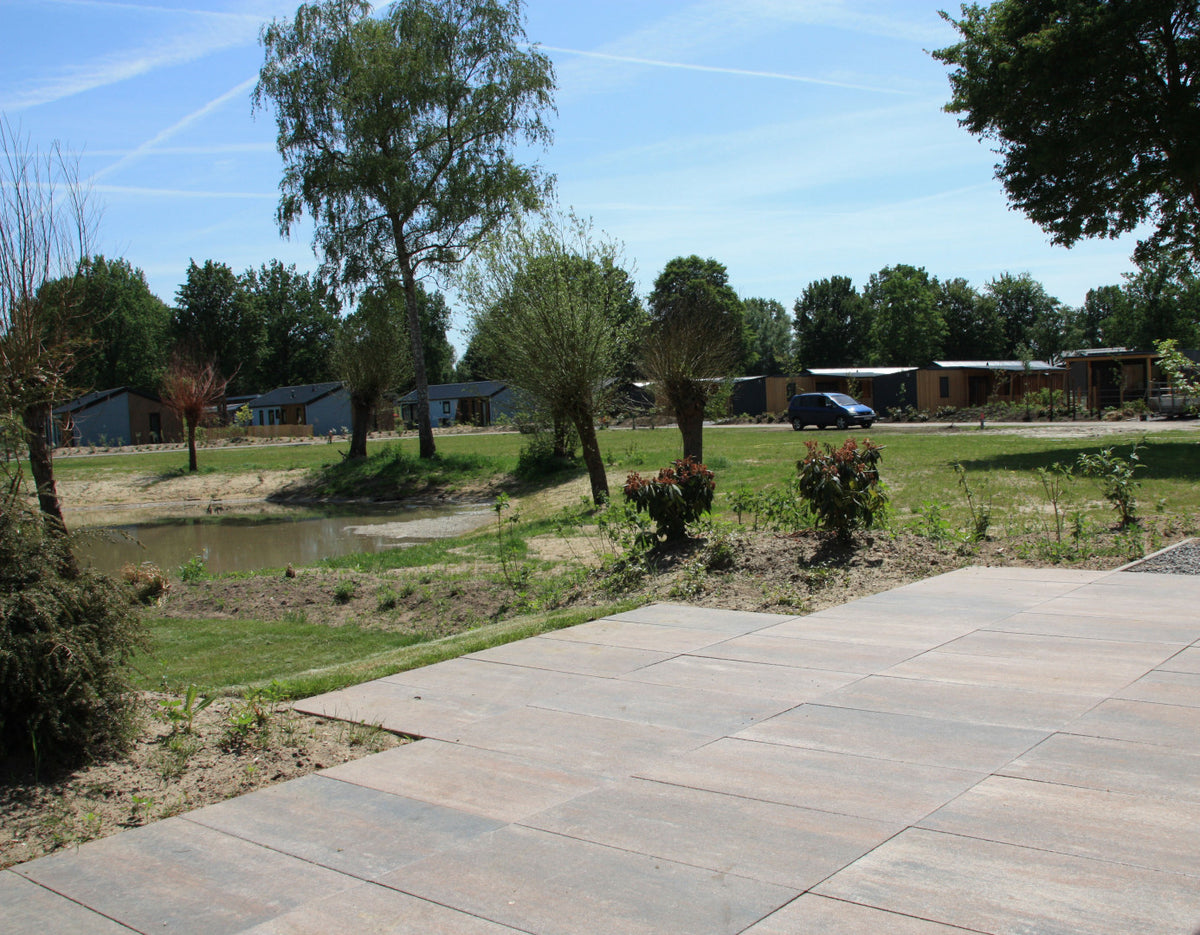 Deze 40x80 cm tegel is ideaal voor ruime terrassen, tuinpaden en zithoeken waar een moderne, luxe uitstraling gewenst is. Door het grote formaat zijn er minder voegen zichtbaar, wat zorgt voor een rustige en strakke uitstraling. De tegel wordt ook veel gecombineerd met stapelblokken voor het maken van verhoogde borders of plantenbakken die extra diepte aan de tuin geven. Voor zwaar verkeer of gebruik op de oprit is deze tegel niet bedoeld.