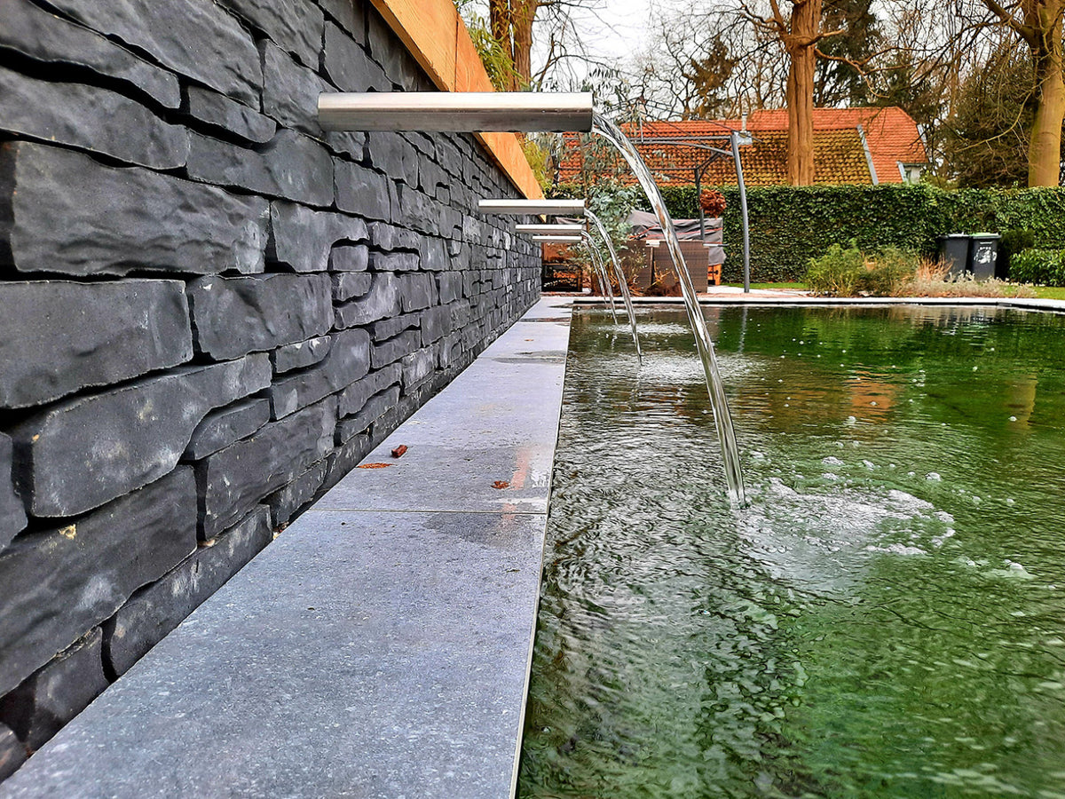 De stenen zijn voorzien van een vlakke toplaag, waardoor het geheel een speels maar toch modern effect krijgt. Dit maakt de Stone Walling bijzonder geschikt voor zowel strakke tuinontwerpen als tuinen met een meer natuurlijke uitstraling. De combinatie van grijs- en zwarttinten zorgt voor een tijdloze look die bij veel bestrating en beplanting past.