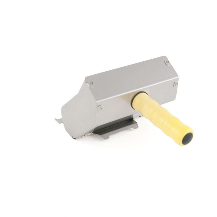 Kalkzandsteen Lijmschep RVS (lijmverdeelbak) is een hulpmiddel voor het aanbrengen van lijm op kalkzandsteen blokken. Het is aan te raden de lijmschep te gebruiken voor de juiste lint- en stootvoegdikte. Deze schept zorgt er voor dat de lijm gelijkmatig wordt verdeeld.