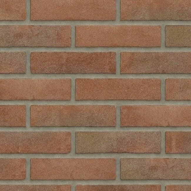 De kleur van deze steen is warm roodbruin met natuurlijke schakeringen van roest, oranje en aardetinten. De licht matte structuur geeft de gevel een rustige en evenwichtige uitstraling. Deze genuanceerde tinten zorgen ervoor dat de steen zich goed aanpast aan verschillende omgevingen en bouwstijlen.